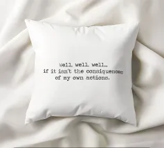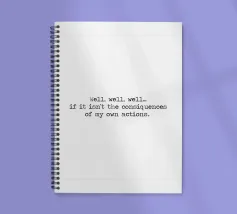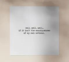 "Well well well, if it isn't the consequences of my own actions" quote minimalist black and white typewriter typography word art famous saying.