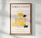 Set on a neutral, cream background, this elegant illustration of the famous whiskey sour cocktail adds sophistication to any kitchen, cafe or dining area. This minimalist yet informative design will spark conversation in any setting, adding a refined touch to your environment.