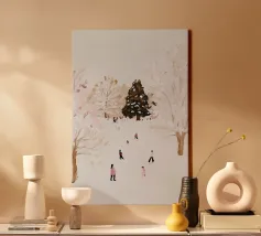 Celebrate the magic of the winter season with our Winter Fun Winter Art Print, a captivating and colorful depiction of a snowy wonderland that will brighten your home decor. Perfect for adding a festive touch to your living space or creating a cozy, joyful atmosphere during the holidays, this whimsical illustration captures families and friends enjoying a wintery scene filled with fun and wonder.