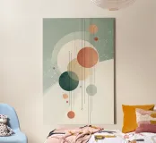 A poetic minimalist print inspired by Bauhaus geometry and celestial movement. Soft winter tones blend with overlapping orbs and fine lines, evoking the feeling of floating through a serene abstract cosmos. Perfect for lovers of mid-century aesthetics and contemporary wall art.