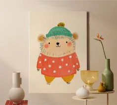 Brighten up your child's space with this charming 'Winterigel' canvas featuring a whimsical hedgehog in a festive winter setting. Perfect for adding a touch of warmth and joy to any children's bedroom or nursery.