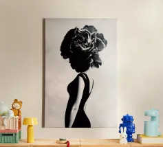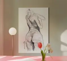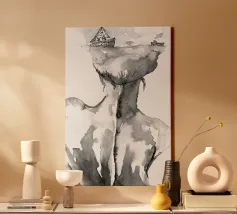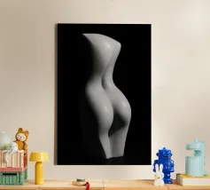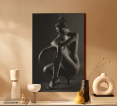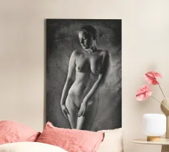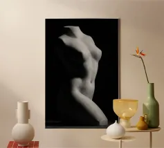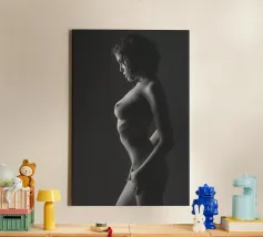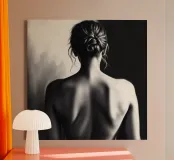 Woman's back portrait in grayscale emphasizing form canvas