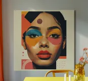 Woman's Face with Geometric Shapes and Abstract Background canvas