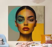 Woman's Portrait with Color Blocks and Geometric Shapes canvas