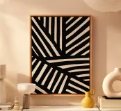 This powerful design with striking black lines on a cream-coloured background is reminiscent of an abstract zebra pattern. The dynamic geometry and contrast make this motif a real eye-catcher, perfect for modern wall murals, cushions, mugs, mobile phone covers and much more. It brings a minimalist yet vibrant aesthetic to any room. Ideal for design lovers looking for stylish and timeless art, or as a unique gift for creative minds.