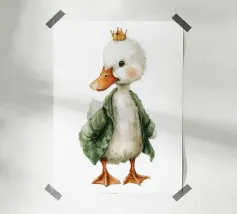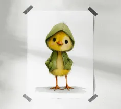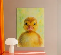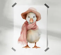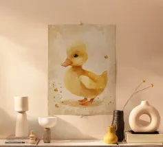 A cute duckling is peeking out from under a soft white towel. Its fluffy yellow feathers and inquisitive eyes create an adorable and charming scene.