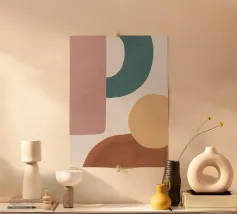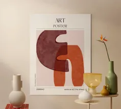 Wavy lines, blocky shapes, and enough dusty rose to make your therapist proud. Poster 00904 is pure mid-century minimalism by algorithm. Another proud piece of the 'Unoriginal Art Collection' – smart, stylish, and ever so slightly passive-aggressive.