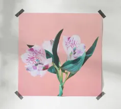 A vibrant notebook with pink flowers resting atop, showcasin hahnemühle