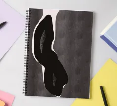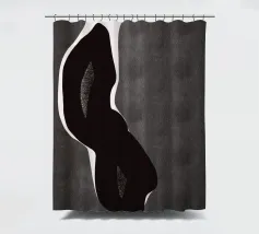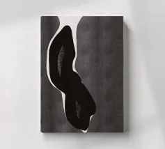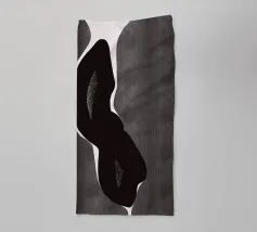 A flowing black and white abstract shape stands out against a textured gray background. The interplay between light and dark creates a sense of depth and movement.