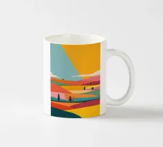 A vibrant landscape of bountiful, rolling fields of crops under a sunny sky with fluffy clouds. The stylized, colorful depiction of the countryside celebrates the beauty and abundance of agricultural land.