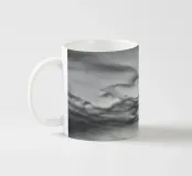 Black and white art photograph of a cloudy sky. The decoratively curved clouds as an abstract image.