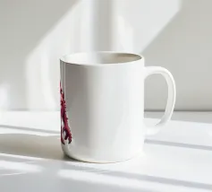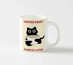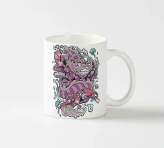A whimsical purple monster with sharp teeth, bright yellow eyes, and a mischievous grin clutching a blue coffee mug. The playful cartoon style adds a fun, quirky vibe perfect for humorous or caffeine-themed projects.