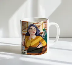 A red haired girl draws amid colorful supplies, blooming with imagination and creativity.