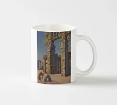 A hauntingly beautiful digital reconstruction of ancient architecture dissolving into light and abstraction. Soft amber and ivory tones merge with geometric precision, giving the impression of classical ruins caught between presence and memory. The faint silhouette of a lone figure enhances the scale and emotional depth, evoking themes of history, decay, and transcendence.