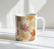 This intricate, seamless pattern showcases a beautiful array of leaves in rich, autumnal tones of deep burgundy, warm gold, and burnt orange. The delicate, hand-drawn style reveals the detailed veins of each leaf, creating a sense of natural elegance and depth. Against a soft, neutral background, the different sizes and colors of the leaves overlap to create a harmonious and sophisticated design. This versatile pattern is perfect for a wide range of products, including fabric for home decor or apparel, stationery, scrapbooking, wallpaper, and other creative projects. The timeless, nature-inspi