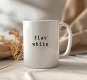 Love to drink flat white coffee. Typography in black and (transparent) white. You can change the background color. Minimalistic typography poster.