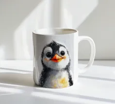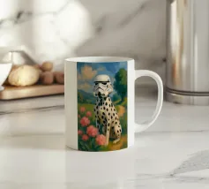 A penguin with a Stormtrooper helmet - painted like a classic oil painting amidst tropical flowers and palm trees. This picture is a charming and quirky mix of pop culture, animal portrait and art history. Humorous, detailed and unique - a real highlight for Star Wars fans, animal lovers and creative spaces with a twinkle in their eye.