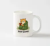 This hand-drawn illustration features a calm, determined cat reminding you to keep moving forward. With a warm color palette and gentle lines, this artwork celebrates perseverance, patience, and inner strength. A comforting piece for workspaces, studios, or any room that needs quiet motivation.