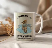 This motivational artwork features a small kitten gazing into a puddle, where its reflection shows a powerful tiger. With the inspiring quote “Mindset is Everything – Progress Starts with Perspective,” it symbolizes confidence, self-belief, and growth. A perfect reminder that perspective shapes potential and dreams begin with mindset.