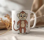 A brown monkey is standing upright, its small body balanced with a playful yet curious posture. Its soft brown fur gleams under the light, while its bright eyes seem full of mischief and intelligence. The monkey’s slender arms hang loosely by its sides, and its long tail curves gracefully behind, adding to its lively appearance. It looks as if it is ready to move at any moment, full of energy and charm