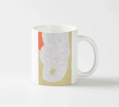 This modern, abstract illustration shows a large knot and twist in light beige and white-cream colours, inspired by Scandinavian boho style. The harmonious colour areas and lines create a childlike, playful pattern that celebrates the beauty of nature.