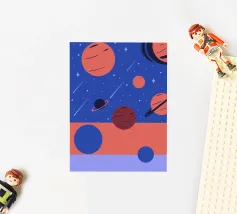 Stunning and detailed planet illustrations, featuring surface textures and color gradations.