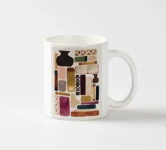 A balanced composition with shells and organic shapes in warm earthy tones. The work shows quiet harmony through color and form.