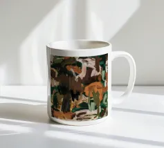 An abstract artwork with a calming arrangement of square and rectangular patches in various shades of green, brown, and beige, resembling a serene, patchwork field or a tranquil, textured surface. Bob Nugent style.