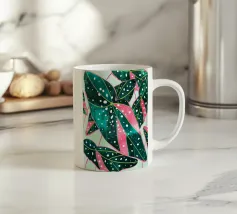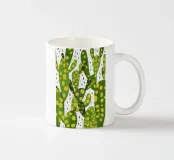 A close up, stylized pattern of a prickly pear cactus shows its green pads and yellow spots in a vibrant and graphic design, capturing the unique texture of the desert plant.