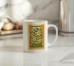 An abstract and minimalist composition focusing on the shadows of leaves cast by a window onto a bright yellow wall. The image is a beautiful and serene study of light, shadow, and form.