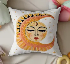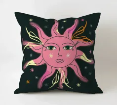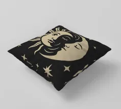 This black, abstract celestial moon design, surrounded by twinkling stars, brings an edgy and artistic flair and combines the mystique of the night sky with a contemporary, avant-garde style, making it a standout piece for any space and piece.