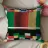 A composition of geometric patterns features a circle with bold vertical stripes in red, yellow, and green, intersected by horizontal bars and surrounded by a variety of checkered and solid colored rectangles. A mix of bright and muted colors, along with sharp lines