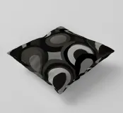 A vibrant array of overlapping circles in differing shades of gray, black, and white creates an engaging visual pattern. The design features contrasting tones that add depth.