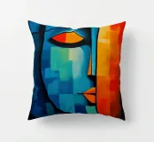 This cubist-inspired and emotionally moving esoteric composition splits the female face into two worlds: The left half sinks into icy blue tones, while hot orange and red tones blaze on the right. The geometric fragmentation is reminiscent of Picasso's cubism, but the vibrant colour palette and impasto brushwork lend the work contemporary power. The almond-shaped eye - at once a window and an enigma - hypnotically fixes the viewer. A haunting meditation on inner contrasts, duality and the complexity of human identity.
