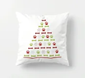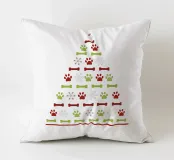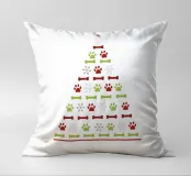 Pine tree made of paw prints. Christmas Happy new year design paw prints and snowflakes background greeting card design