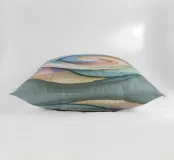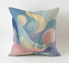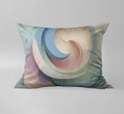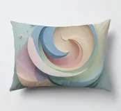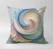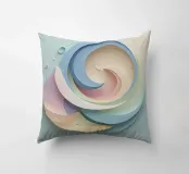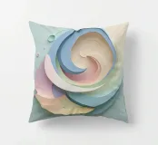 Intricate spiral shapes in soft pastels blend harmoniously, giving the illusion of flowing motion against a pale backdrop. The design captivates with its gentle curves.