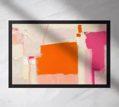 A bold exploration of structure through vivid abstraction. Dominated by layers of crimson, orange, and coral, this dynamic composition interlocks geometric forms with expressive brushwork, creating a rhythmic energy that feels architectural yet emotive. The interplay of sharp angles and soft gradients evokes movement, heat, and vitality — a striking centerpiece for any modern space.