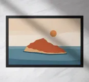 Embrace the profound beauty of serene solitude. This minimalist landscape captures the quiet moment the sun kisses the horizon, casting a warm glow over a tranquil sea. Using simple shapes and a soothing, earthy palette of terracotta and muted blues, this piece is an open invitation to pause, breathe, and find a moment of stillness in a busy world. It’s the perfect artwork to create a calm, meditative focal point in your living room, bedroom, or any space where you seek peace and a gentle escape.