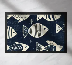 Various fishes and water plants drawn in Illustrator, seamless vector pattern