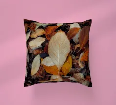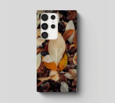 A red leaf lies on the ground, its color glowing warmly against the earth as a sign of autumn.