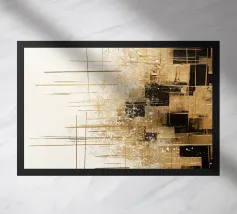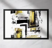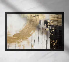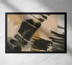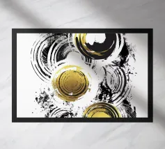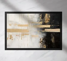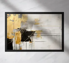 Modern abstract graphic design with a touch of elegance. Experimental vector painting with different brushes in black and white with golden highlights. Dynamic and very appealing contemporary design.