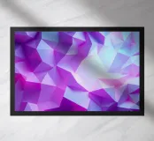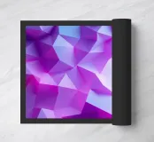 Vibrant abstract composition showcases a blend of purple and blue hues, forming sharp geometric shapes and smooth transitions that create depth and movement.