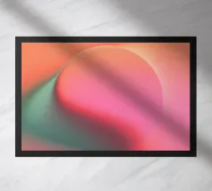 A soft, elegantly curved shape combines light pastel colors, creating a serene and modern aesthetic. The smooth gradients evoke a calming atmosphere, inviting contemplation.