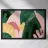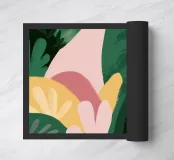 An elegant abstract artwork features overlapping leaves and organic shapes in a sophisticated palette of green, pink, and white, creating a modern and graceful botanical composition.