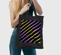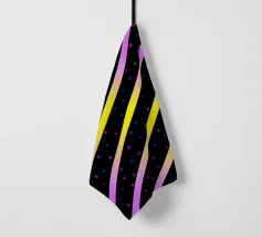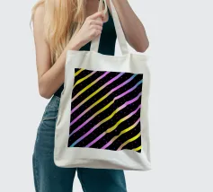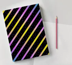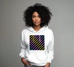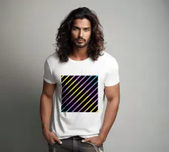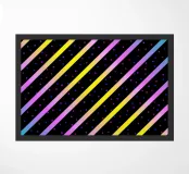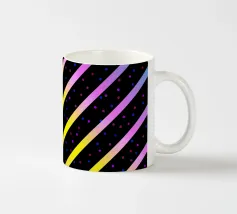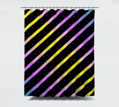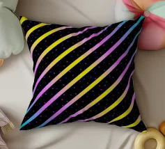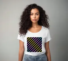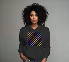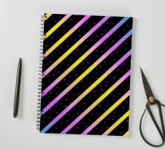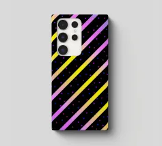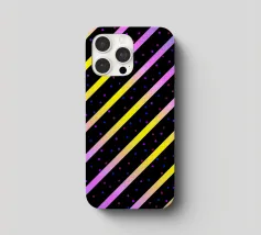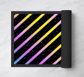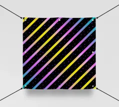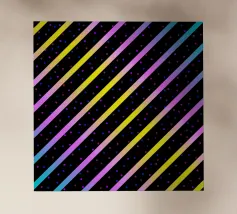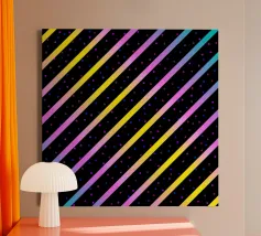 Modern abstract composition of diagonal stripes in neon colour gradients and rhythmically arranged dots.
