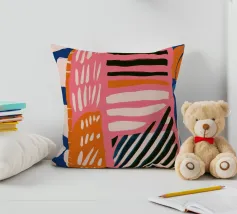 A vibrant and chaotic abstract composition of scribbles, shapes, and patterns, including rainbows and polka dots. The artwork is a joyful explosion of creative energy and uninhibited expression.
