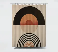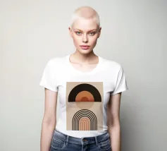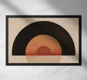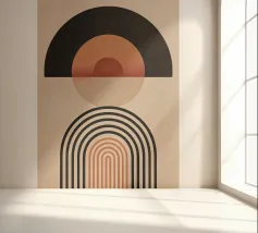 This artistic design combines geometric shapes with warm earthy colours such as black, brown and beige. The stylised sun combined with elegant arches gives the motif a calming and harmonious appearance. Ideal for modern living spaces or as a gift for lovers of minimalist and timeless art. Perfect for products such as wall murals, cushions or T-shirts to add a creative touch to any room.