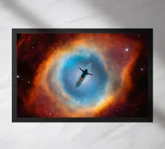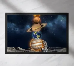 This futuristic sci-fi artwork features an astronaut gliding on a glowing hoverboard high above Earth, framed by a circular spacecraft window and surrounded by countless stars. Vivid cosmic colors, neon lighting, and playful imagination blend into an adventurous space fantasy that feels bold and full of motion. Perfect for collectors of sci-fi art, gaming rooms, and modern interiors seeking a vibrant space theme. A unique wall print for dreamers, explorers, and anyone inspired by futuristic technology and outer-space imagination.
