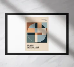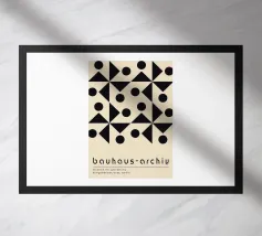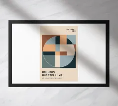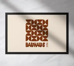Immerse yourself in the foundational principles of modern design with this striking Bauhaus-inspired art print. The artwork features a precise grid of minimalist geometric shapes – squares, circles, and a central diamond – rendered in a sophisticated, earthy beige hue. This design perfectly embodies the abstract simplicity and functional beauty that defined the iconic Bauhaus movement, founded in 1919. Produced at an impressive 7000x5000 pixels resolution and 300 dpi, this high-quality digital art ensures every crisp line and subtle shade is rendered with exceptional precision, making it an id