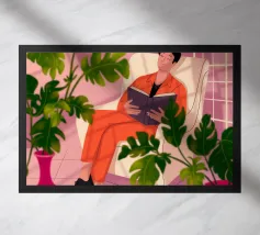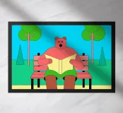 Calming Bear Illustration! This unique design features a bear engrossed in a book, creating a peaceful and comfortable atmosphere.
